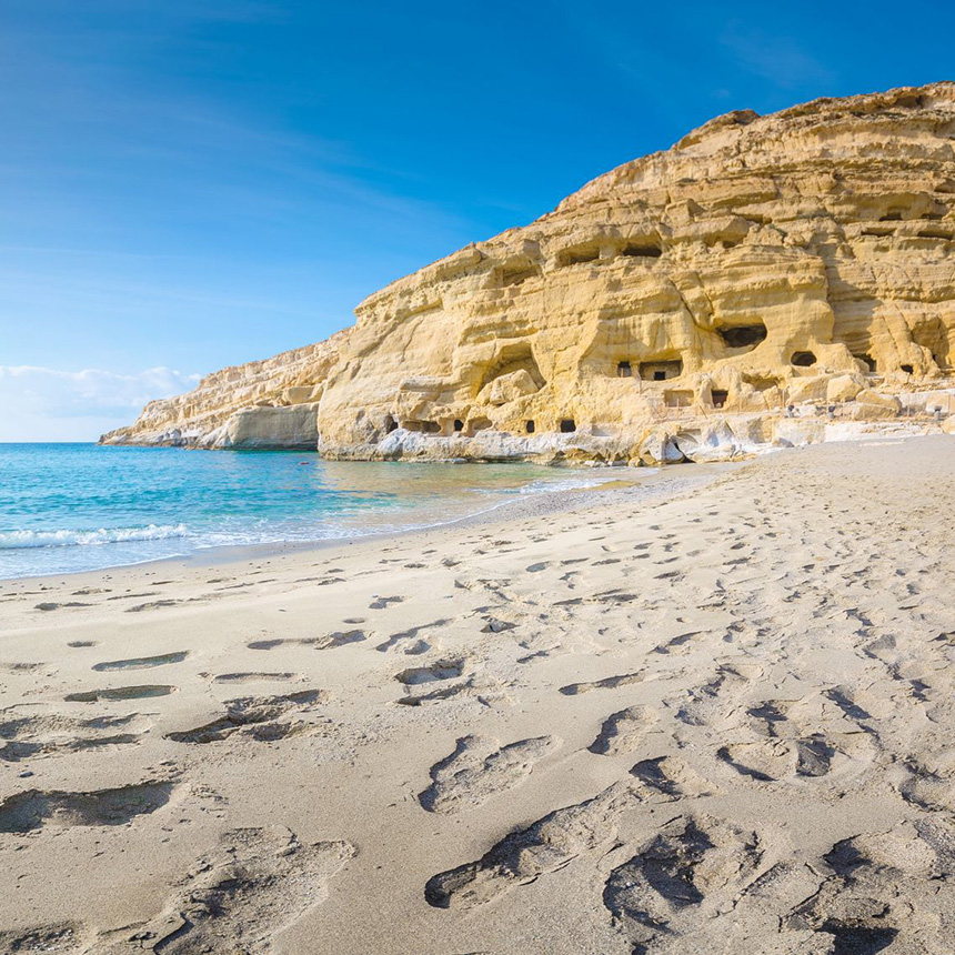 Experience the spirit of the 70s at the legendary Matala caves, followed by a journey through time at the Roman ruins of Gortyn. A perfect blend of bohemian vibes and ancient history.